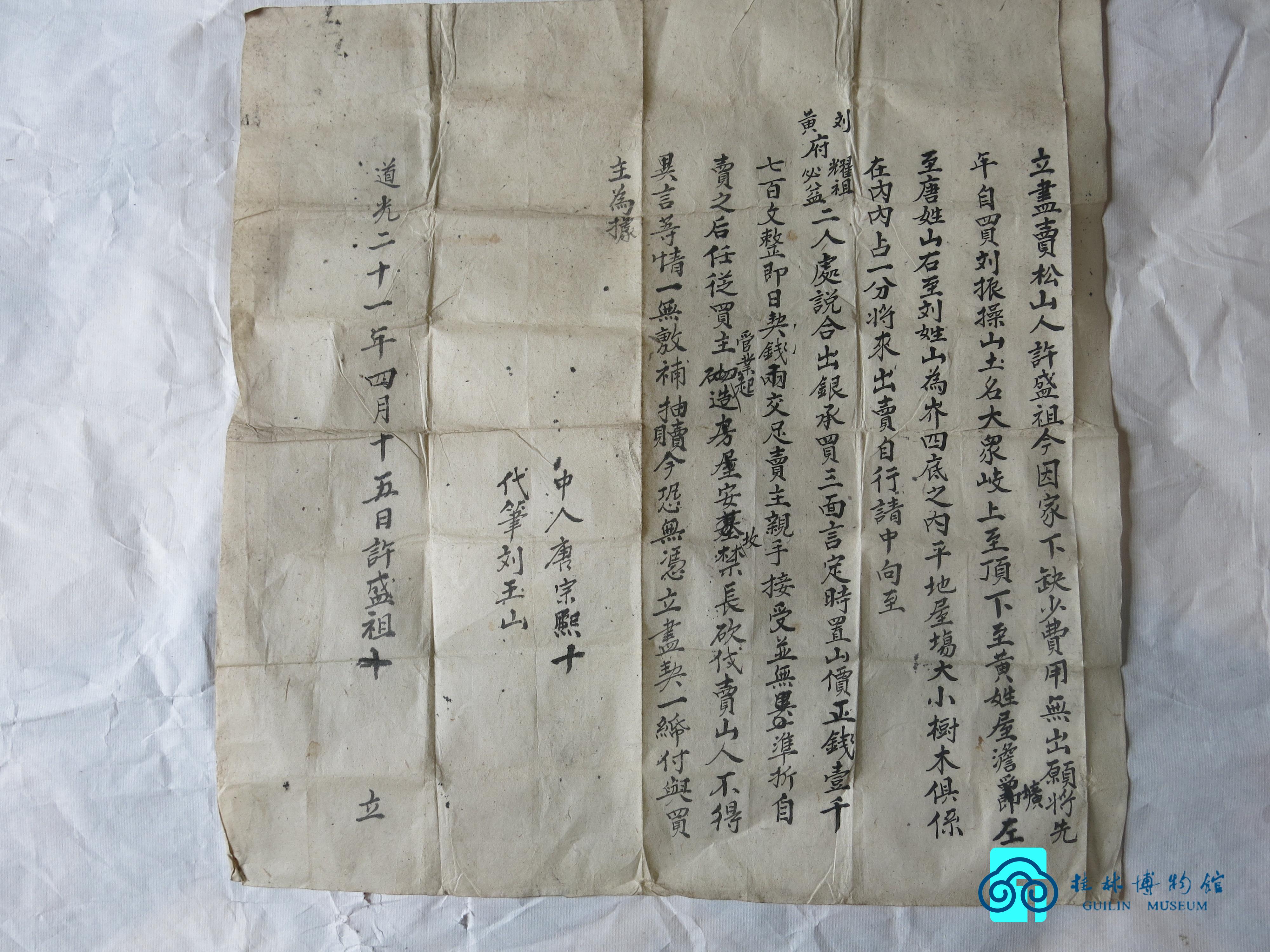 清道光二十一年许盛祖卖地契约