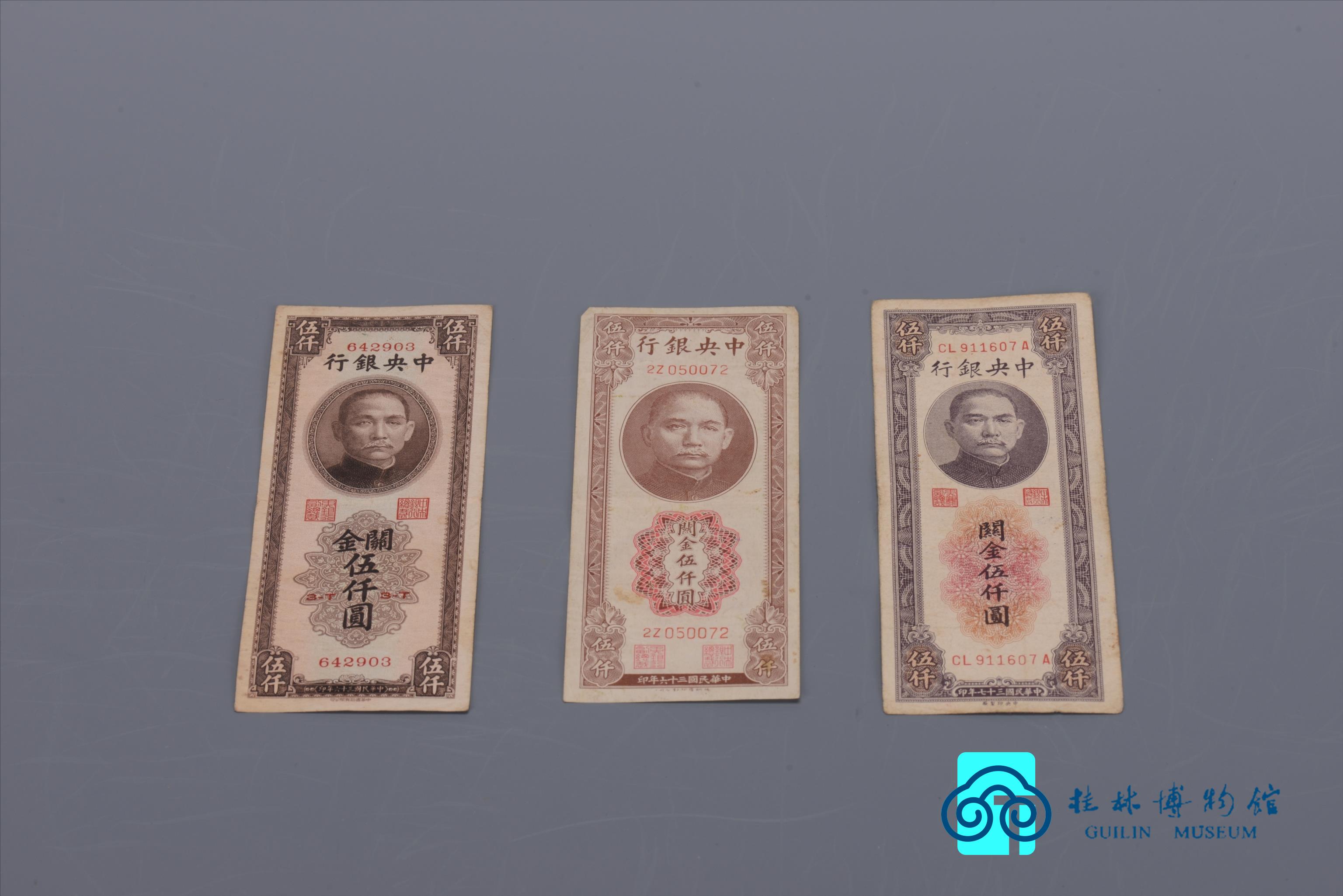 民国 中央银行德纳罗版关金券五千元等各种纸币