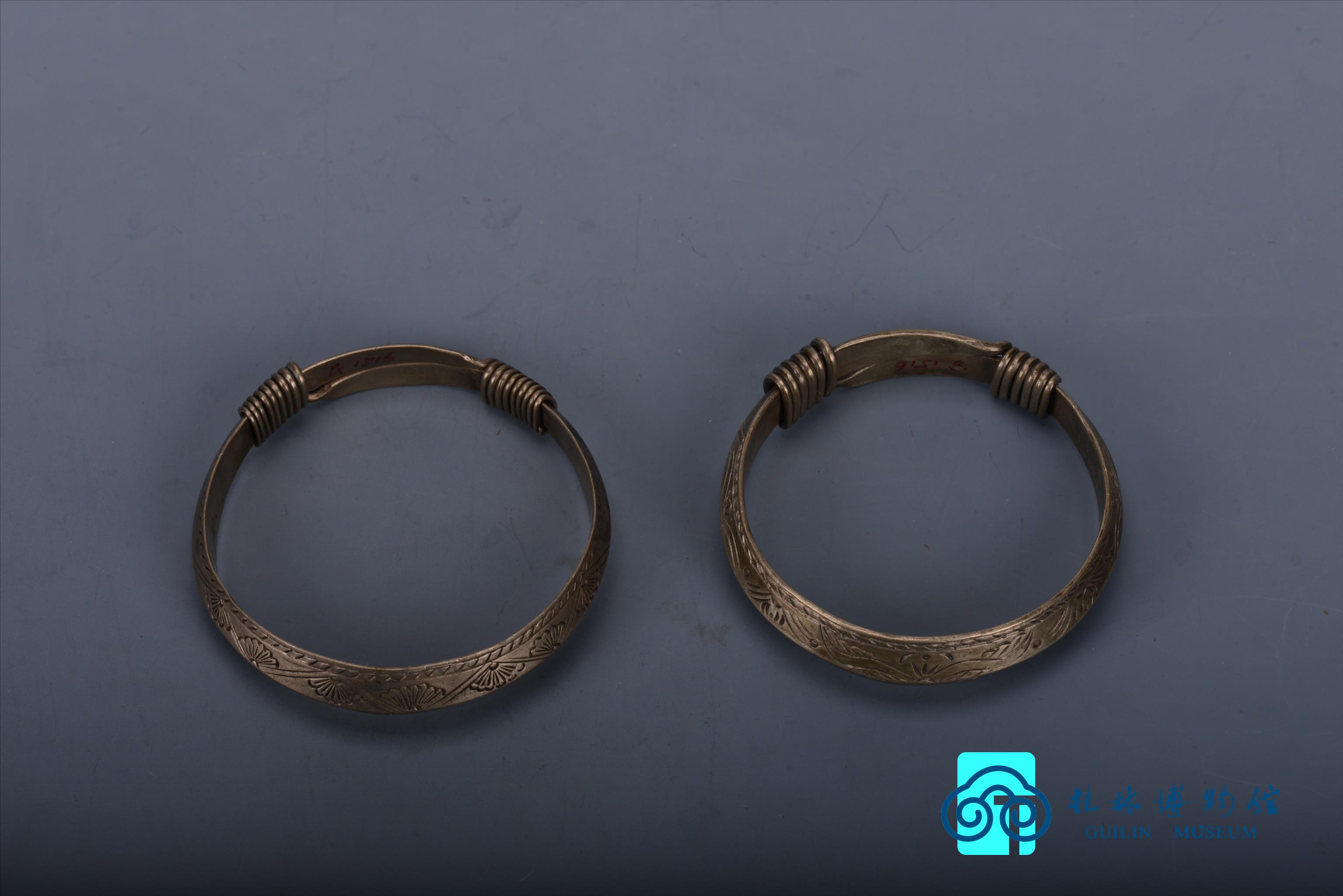 清广西三江侗族錾花银手镯
